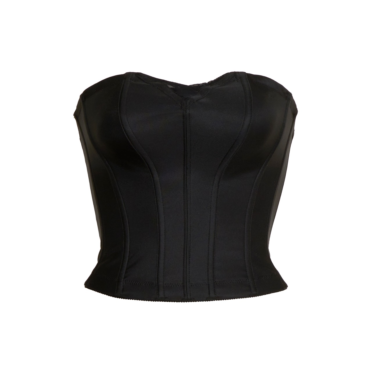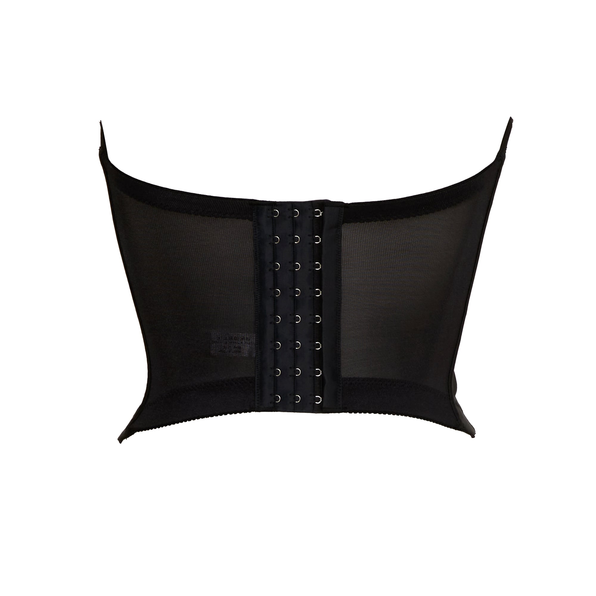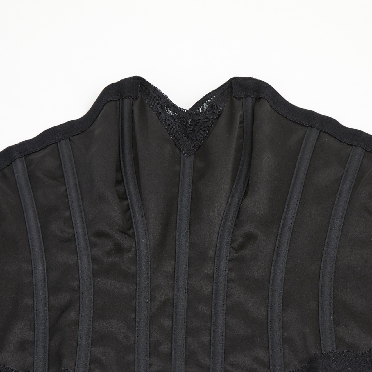 既存コルセットより丈が短く、胸元(谷間)はシンプルパワーネットのカシュクールタイプ。